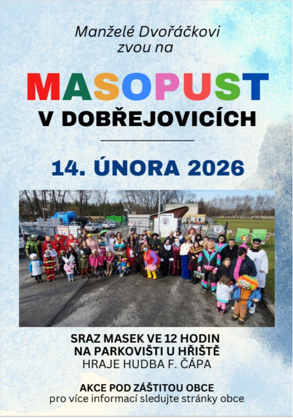 13.2.2026 - manželé Dvořáčkovi ze spolku zvou na masopust v Dobřejovicích (viz. níže)