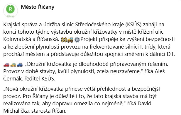 10.2.2026 - Okružní křižovatka na Říčanské a Kolovratské
